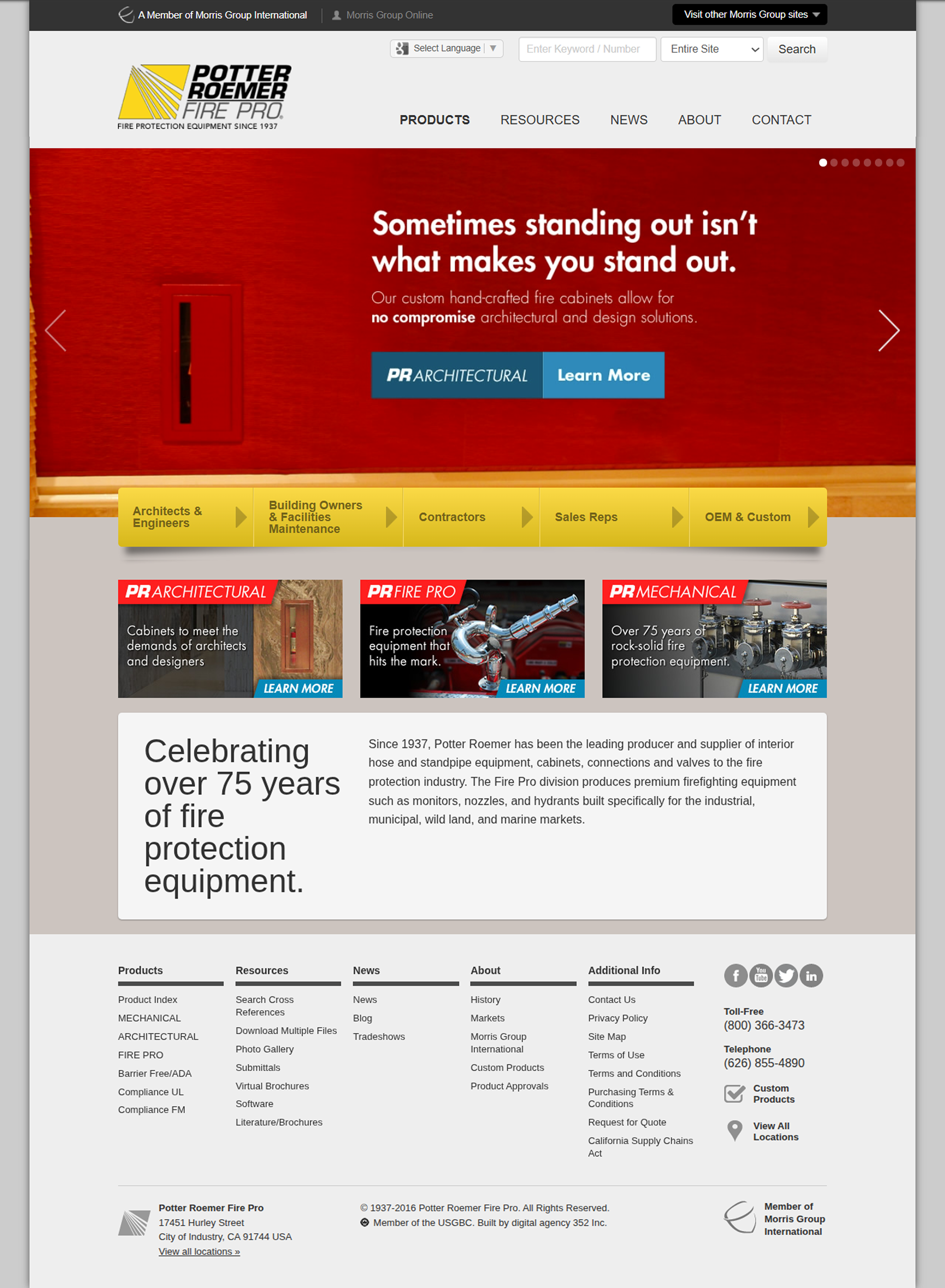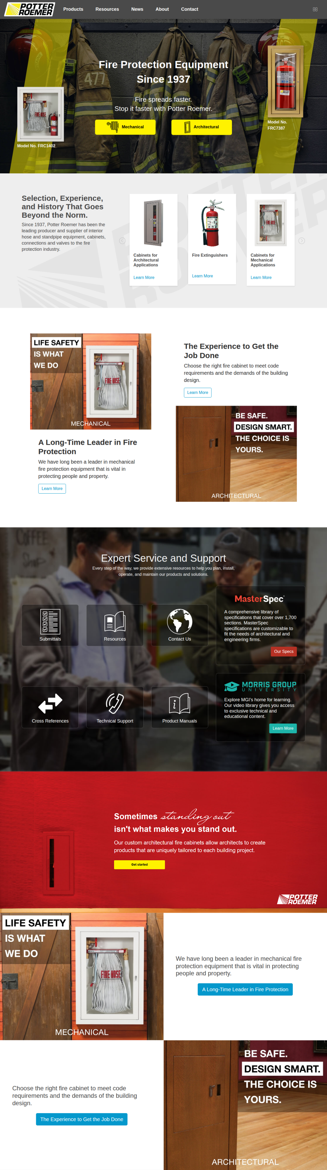Potter Roemer is a division of Morris Group that focused on fire safety and fire extinguisher cabinets. Their products focus on strong functionality and being able to fit in with any interior.