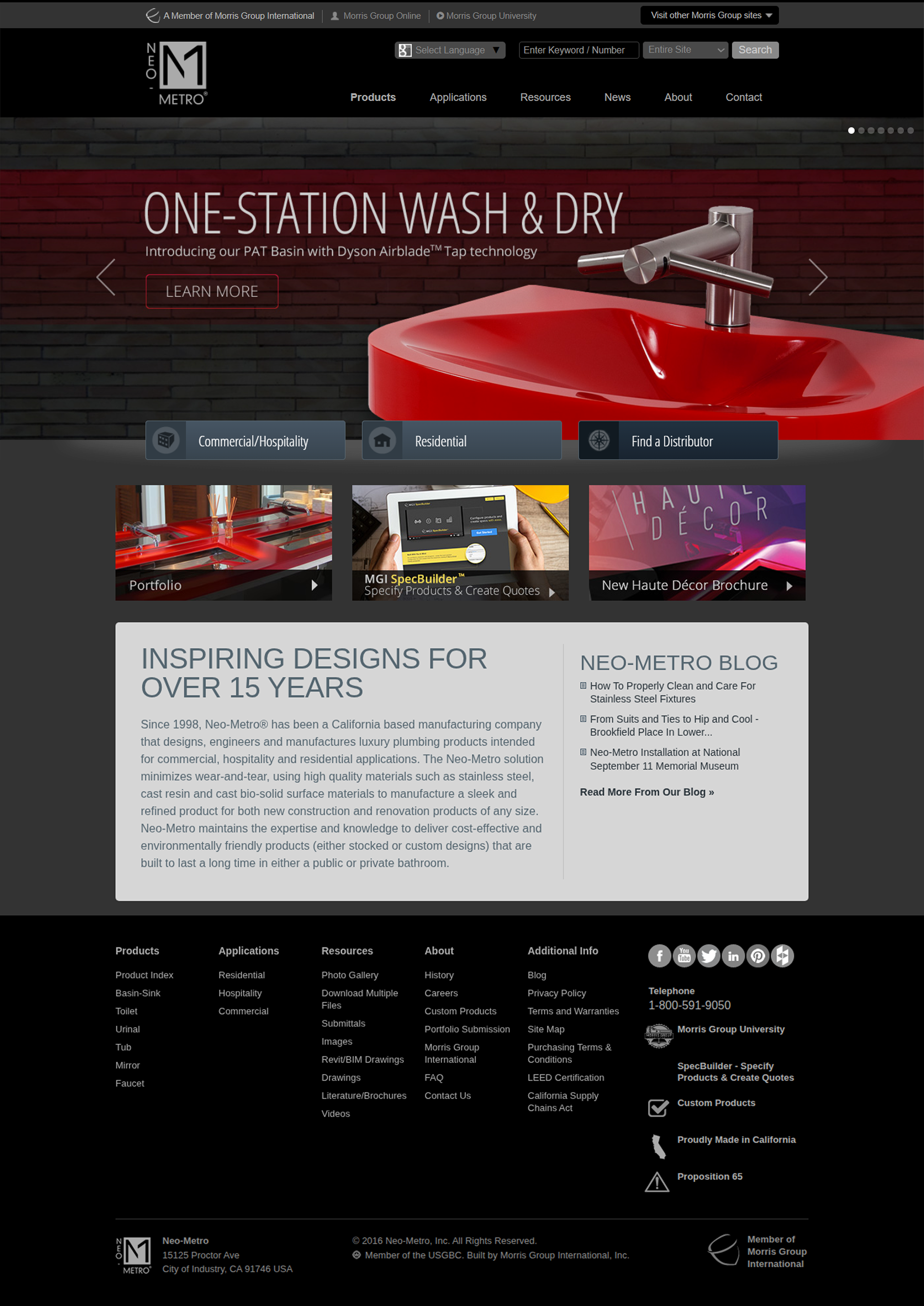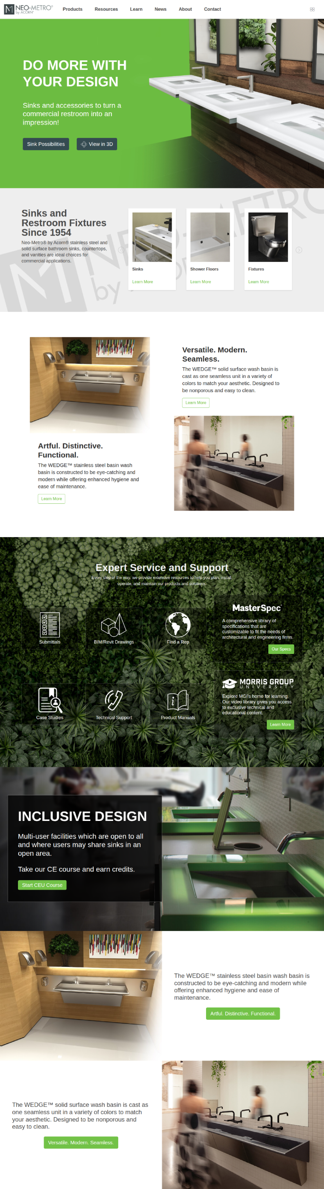 Neo-Metro is Morris Group’s luxury brand for commercial sinks. One of their signature products were resin cast sinks that could be colored to customer specification.